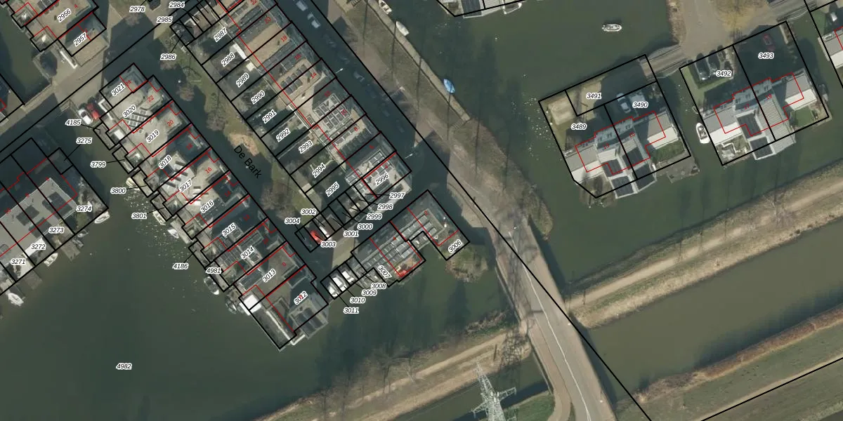 Het perceel waarop De Bark 2 staat heeft een oppervlakte van 143 m². Dit is een middelgroot perceel. De perceeloppervlakte wordt geregistreerd door het Kadaster. Gedetailleerde informatie over de maten van dit perceel kunt u vinden in het rapport Kadastrale kaart met maatvoering van De Bark 2.