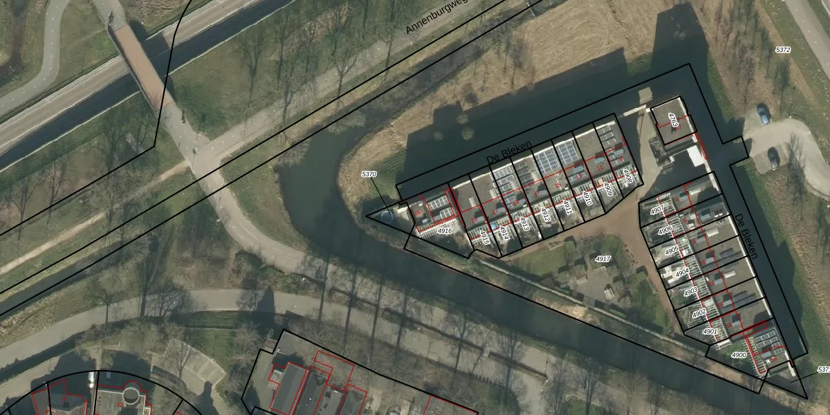 Gebruik de zoekbalk of klik op een perceel voor informatie over de adressen binnen dit perceel.