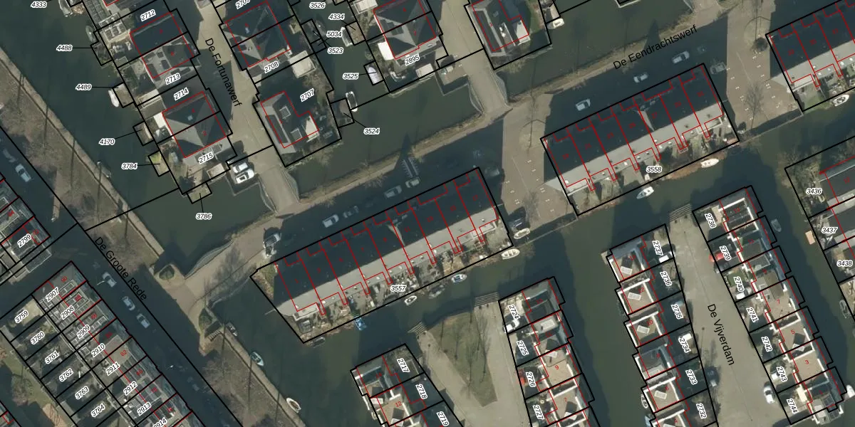 Het perceel waarop De Eendrachtswerf 13 staat heeft een oppervlakte van 1141 m². Dit is een zeer groot perceel. De perceeloppervlakte wordt geregistreerd door het Kadaster. Gedetailleerde informatie over de maten van dit perceel kunt u vinden in het rapport Kadastrale kaart met maatvoering van De Eendrachtswerf 13.