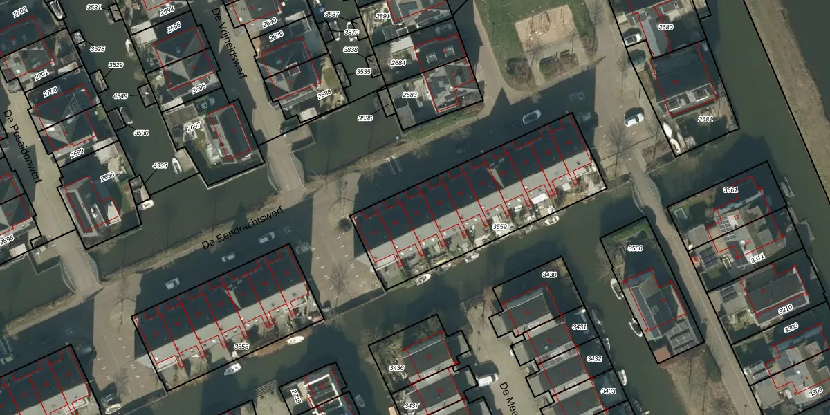 Het perceel waarop De Eendrachtswerf 37 staat heeft een oppervlakte van 1181 m². Dit is een zeer groot perceel. De perceeloppervlakte wordt geregistreerd door het Kadaster. Gedetailleerde informatie over de maten van dit perceel kunt u vinden in het rapport Kadastrale kaart met maatvoering van De Eendrachtswerf 37.