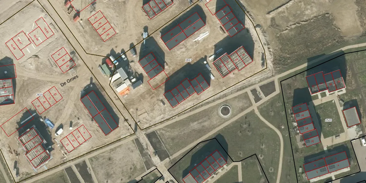 De Groes 12 is gelegen op kadastraal perceel HTG00U2617. Deze kadastrale aanduiding is uniek en wordt gebruikt door het Kadaster om eigendomsrechten en andere zakelijke rechten vast te leggen. Het perceel maakt onderdeel uit van de kadastrale gemeente 's-Hertogenbosch.
