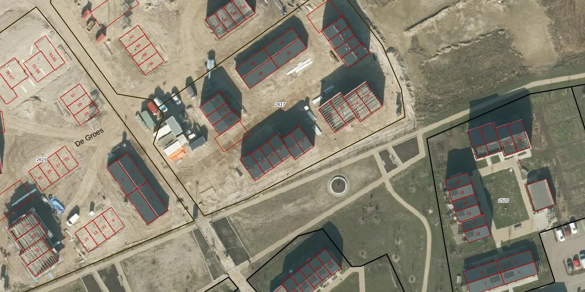 De Groes 16 is gelegen op kadastraal perceel HTG00U2617. Deze kadastrale aanduiding is uniek en wordt gebruikt door het Kadaster om eigendomsrechten en andere zakelijke rechten vast te leggen. Het perceel maakt onderdeel uit van de kadastrale gemeente 's-Hertogenbosch.
