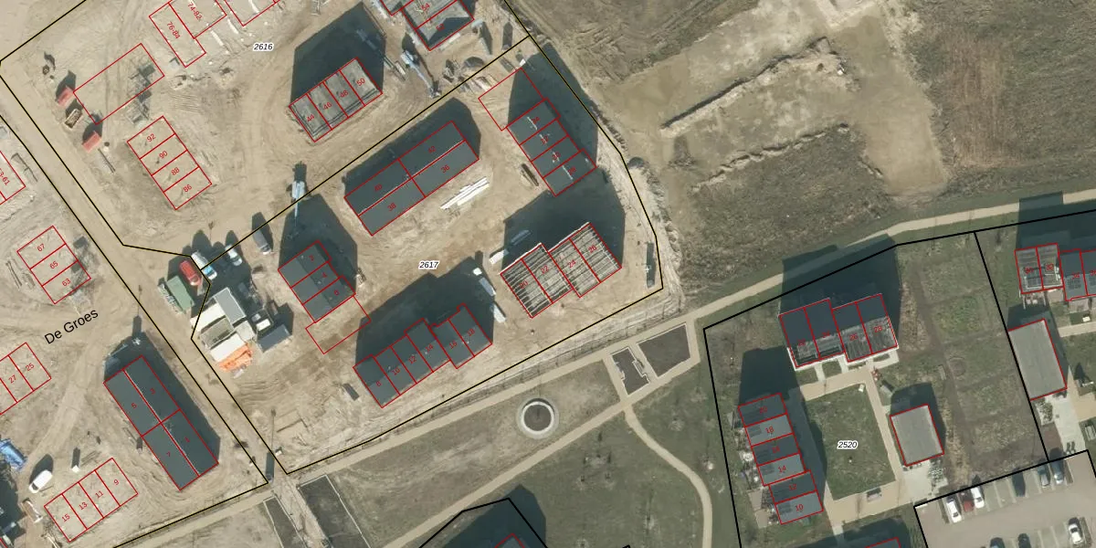 Het perceel waarop De Groes 22 staat heeft een oppervlakte van 3762 m². Dit is een zeer groot perceel. De perceeloppervlakte wordt geregistreerd door het Kadaster. Gedetailleerde informatie over de maten van dit perceel kunt u vinden in het rapport Kadastrale kaart met maatvoering van De Groes 22.