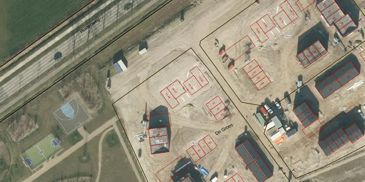 De Groes 47 is gelegen op kadastraal perceel HTG00U2615. Deze kadastrale aanduiding is uniek en wordt gebruikt door het Kadaster om eigendomsrechten en andere zakelijke rechten vast te leggen. Het perceel maakt onderdeel uit van de kadastrale gemeente 's-Hertogenbosch.