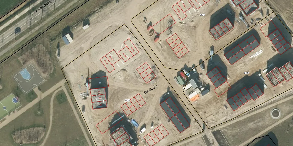 De Groes 65 is gelegen op kadastraal perceel HTG00U2615. Deze kadastrale aanduiding is uniek en wordt gebruikt door het Kadaster om eigendomsrechten en andere zakelijke rechten vast te leggen. Het perceel maakt onderdeel uit van de kadastrale gemeente 's-Hertogenbosch.