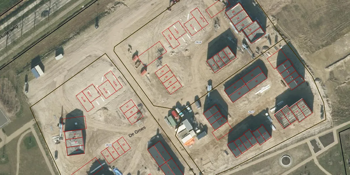 Het perceel waarop De Groes 86 staat heeft een oppervlakte van 4267 m². Dit is een zeer groot perceel. De perceeloppervlakte wordt geregistreerd door het Kadaster. Gedetailleerde informatie over de maten van dit perceel kunt u vinden in het rapport Kadastrale kaart met maatvoering van De Groes 86.