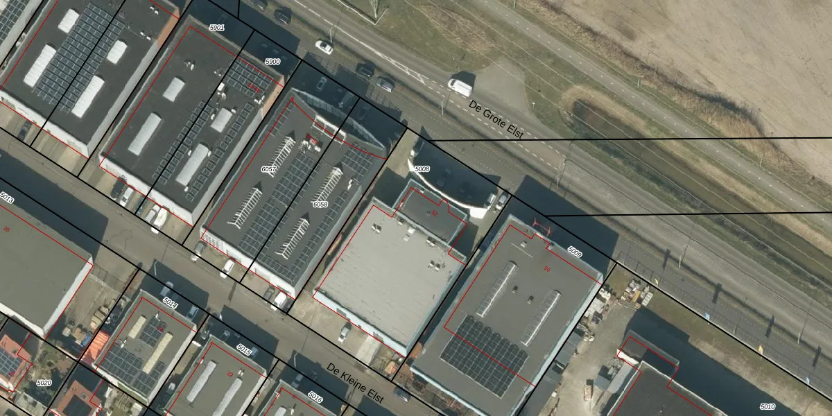 Het perceel waarop De Grote Elst 52-A staat heeft een oppervlakte van 1600 m². Dit is een zeer groot perceel. De perceeloppervlakte wordt geregistreerd door het Kadaster. Gedetailleerde informatie over de maten van dit perceel kunt u vinden in het rapport Kadastrale kaart met maatvoering van De Grote Elst 52-A.