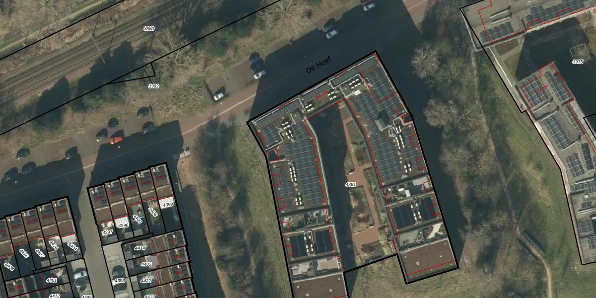 Het perceel waarop De Hoef 508 staat heeft een oppervlakte van 3600 m². Dit is een zeer groot perceel. De perceeloppervlakte wordt geregistreerd door het Kadaster. Gedetailleerde informatie over de maten van dit perceel kunt u vinden in het rapport Kadastrale kaart met maatvoering van De Hoef 508.