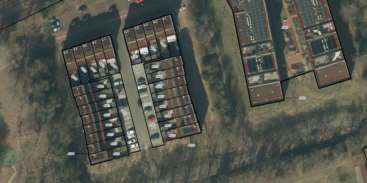 Gebruik de zoekbalk of klik op een perceel voor informatie over de adressen binnen dit perceel.