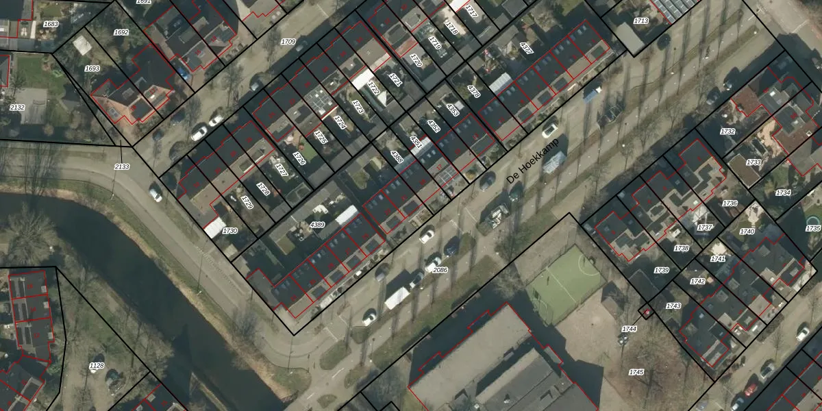 Het perceel waarop De Hoekkamp 21 staat heeft een oppervlakte van 1055 m². Dit is een zeer groot perceel. De perceeloppervlakte wordt geregistreerd door het Kadaster. Gedetailleerde informatie over de maten van dit perceel kunt u vinden in het rapport Kadastrale kaart met maatvoering van De Hoekkamp 21.