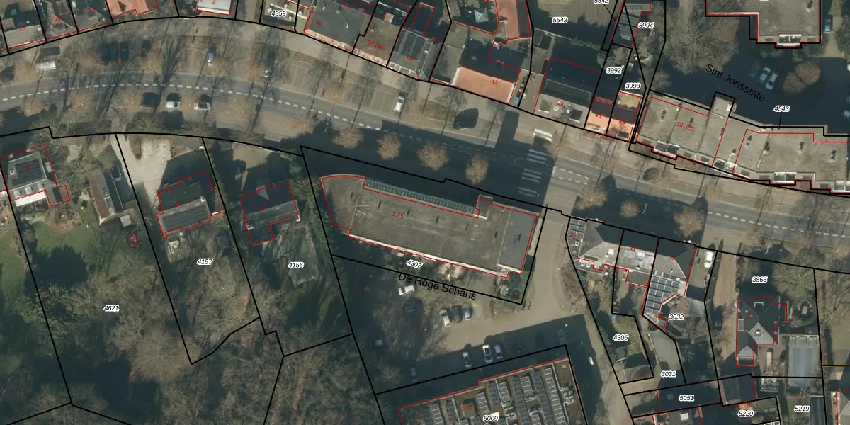 Het perceel waarop De Hoge Schans 25 staat heeft een oppervlakte van 1220 m². Dit is een zeer groot perceel. De perceeloppervlakte wordt geregistreerd door het Kadaster. Gedetailleerde informatie over de maten van dit perceel kunt u vinden in het rapport Kadastrale kaart met maatvoering van De Hoge Schans 25.