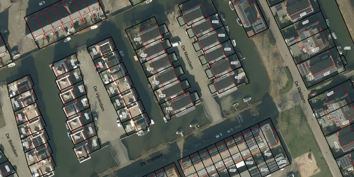 Gebruik de zoekbalk of klik op een perceel voor informatie over de adressen binnen dit perceel.