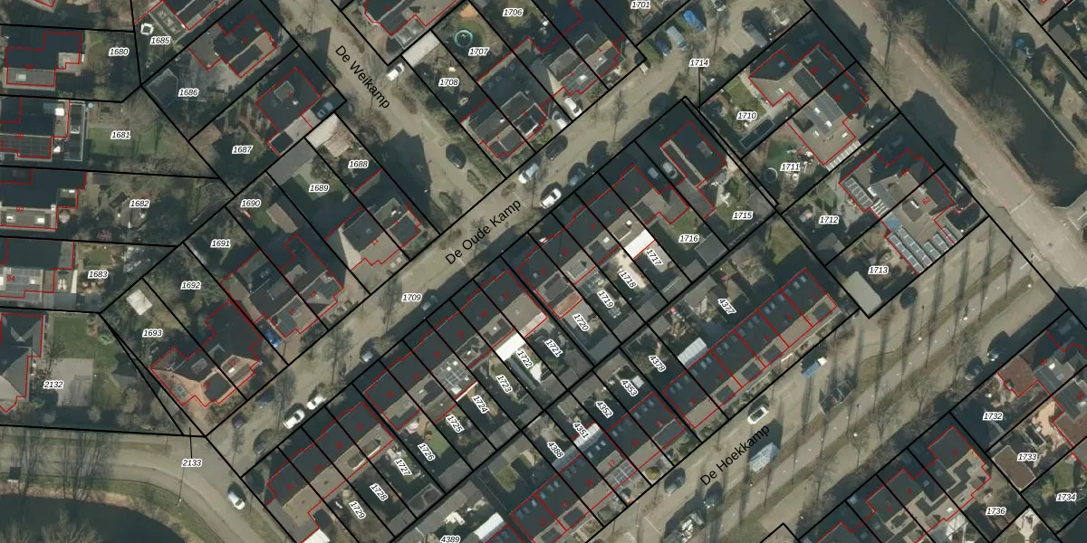 Het perceel waarop De Oude Kamp 12 staat heeft een oppervlakte van 179 m². Dit is een middelgroot perceel. De perceeloppervlakte wordt geregistreerd door het Kadaster. Gedetailleerde informatie over de maten van dit perceel kunt u vinden in het rapport Kadastrale kaart met maatvoering van De Oude Kamp 12.