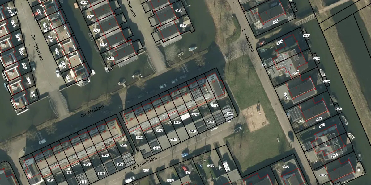 Het perceel waarop De Wieldam 35 staat heeft een oppervlakte van 154 m². Dit is een middelgroot perceel. De perceeloppervlakte wordt geregistreerd door het Kadaster. Gedetailleerde informatie over de maten van dit perceel kunt u vinden in het rapport Kadastrale kaart met maatvoering van De Wieldam 35.