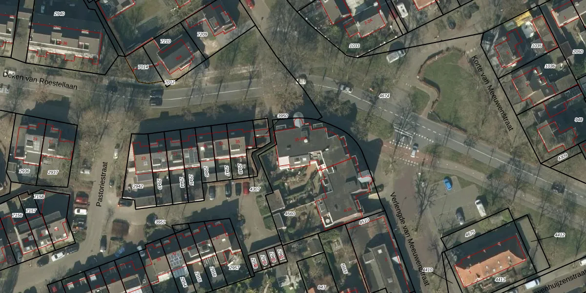 Het perceel waarop Deken van Roestellaan 35-C staat heeft een oppervlakte van 1283 m². Dit is een zeer groot perceel. De perceeloppervlakte wordt geregistreerd door het Kadaster. Gedetailleerde informatie over de maten van dit perceel kunt u vinden in het rapport Kadastrale kaart met maatvoering van Deken van Roestellaan 35-C.