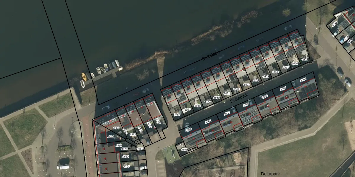 Gebruik de zoekbalk of klik op een perceel voor informatie over de adressen binnen dit perceel.