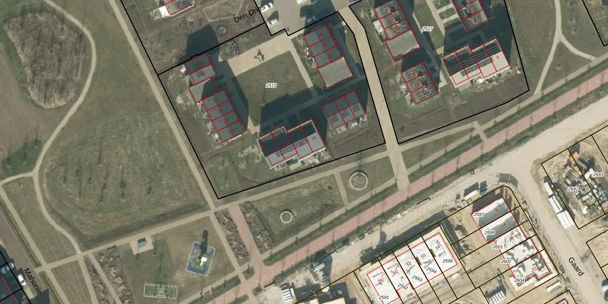 Het perceel waarop het adres ligt is HTG00-U-2519. De afkorting 'HTG00' staat voor kadastrale gemeente 's-Hertogenbosch. De gemiddelde perceeloppervlakte in de kadastrale gemeente 's-Hertogenbosch is 1695,33 m². Dit perceel is met zijn 2875 m² dus groter dan gemiddeld. De grootste perceeloppervlakte in de kadastrale gemeente is 55,1 ha. De kleinste oppervlakte bedraagt 0 m². Op het perceel zijn 16 adressen aanwezig. In de Basisregistratie Kadaster (BRK) werden de grenzen van het perceel geregistreerd op 28-02-2025.