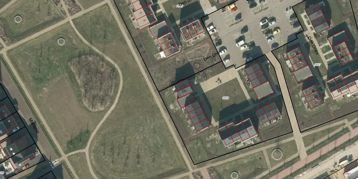 Den Dries 33 is gelegen op kadastraal perceel HTG00U2519. Deze kadastrale aanduiding is uniek en wordt gebruikt door het Kadaster om eigendomsrechten en andere zakelijke rechten vast te leggen. Het perceel maakt onderdeel uit van de kadastrale gemeente 's-Hertogenbosch.