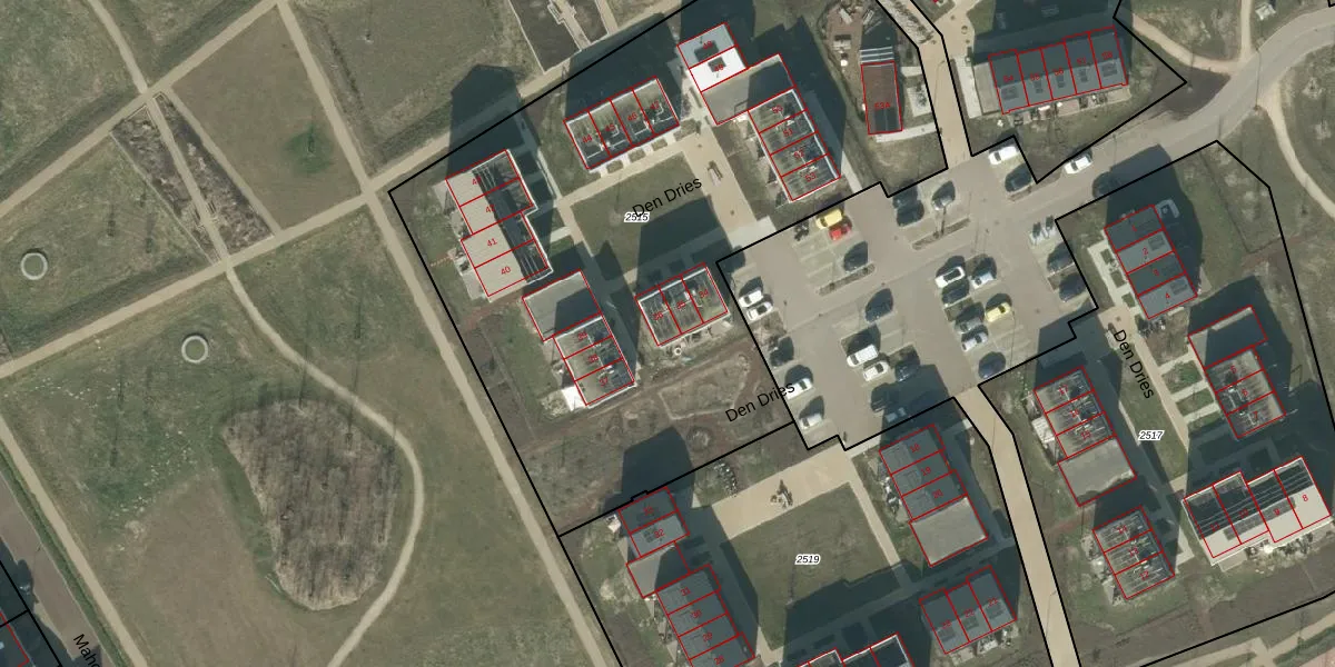 Het perceel waarop Den Dries 36 staat heeft een oppervlakte van 3795 m². Dit is een zeer groot perceel. De perceeloppervlakte wordt geregistreerd door het Kadaster. Gedetailleerde informatie over de maten van dit perceel kunt u vinden in het rapport Kadastrale kaart met maatvoering van Den Dries 36.