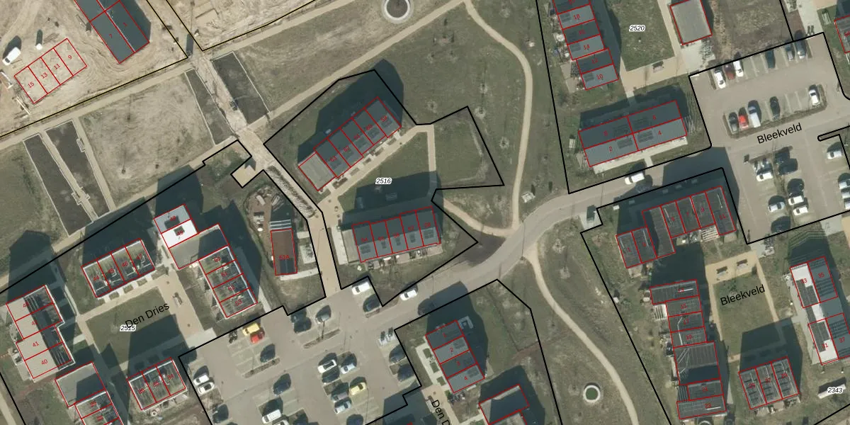 Het perceel waarop Den Dries 58 staat heeft een oppervlakte van 1660 m². Dit is een zeer groot perceel. De perceeloppervlakte wordt geregistreerd door het Kadaster. Gedetailleerde informatie over de maten van dit perceel kunt u vinden in het rapport Kadastrale kaart met maatvoering van Den Dries 58.