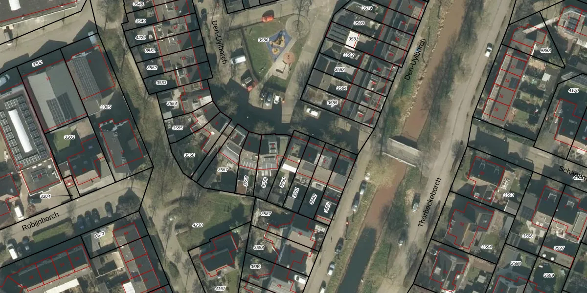 Het perceel waarop Den-Uylborch 4 staat heeft een oppervlakte van 153 m². Dit is een middelgroot perceel. De perceeloppervlakte wordt geregistreerd door het Kadaster. Gedetailleerde informatie over de maten van dit perceel kunt u vinden in het rapport Kadastrale kaart met maatvoering van Den-Uylborch 4.