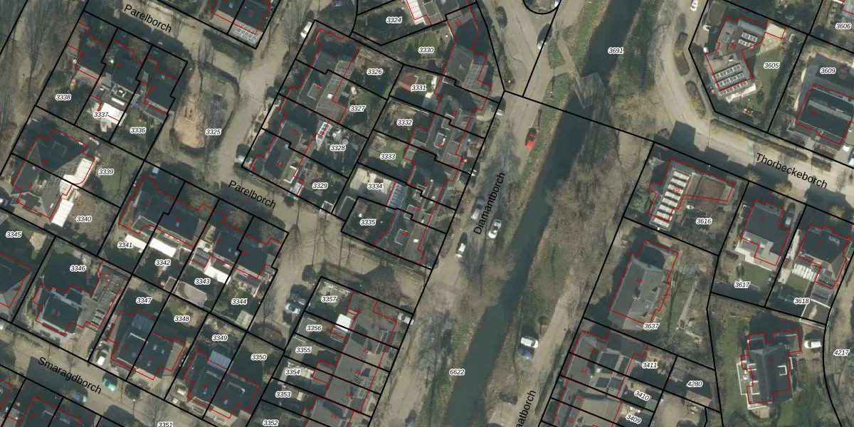 Het perceel waarop Diamantborch 25 staat heeft een oppervlakte van 195 m². Dit is een middelgroot perceel. De perceeloppervlakte wordt geregistreerd door het Kadaster. Gedetailleerde informatie over de maten van dit perceel kunt u vinden in het rapport Kadastrale kaart met maatvoering van Diamantborch 25.