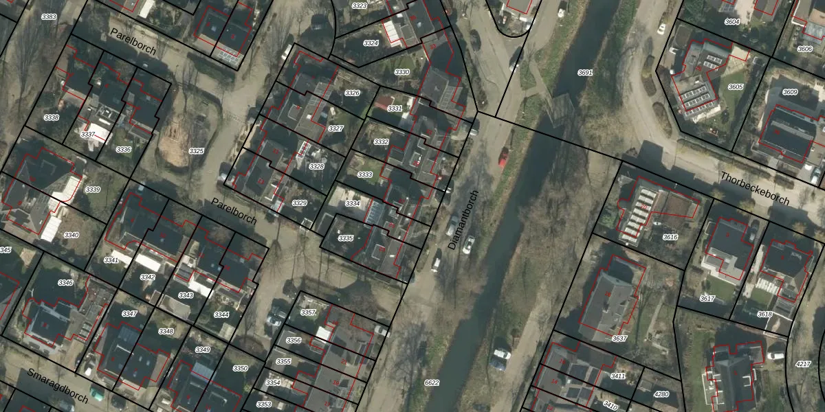 Het perceel waarop Diamantborch 27 staat heeft een oppervlakte van 225 m². Dit is een middelgroot perceel. De perceeloppervlakte wordt geregistreerd door het Kadaster. Gedetailleerde informatie over de maten van dit perceel kunt u vinden in het rapport Kadastrale kaart met maatvoering van Diamantborch 27.