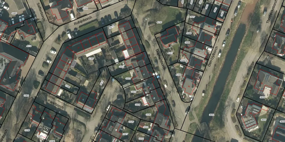 Gebruik de zoekbalk of klik op een perceel voor informatie over de adressen binnen dit perceel.