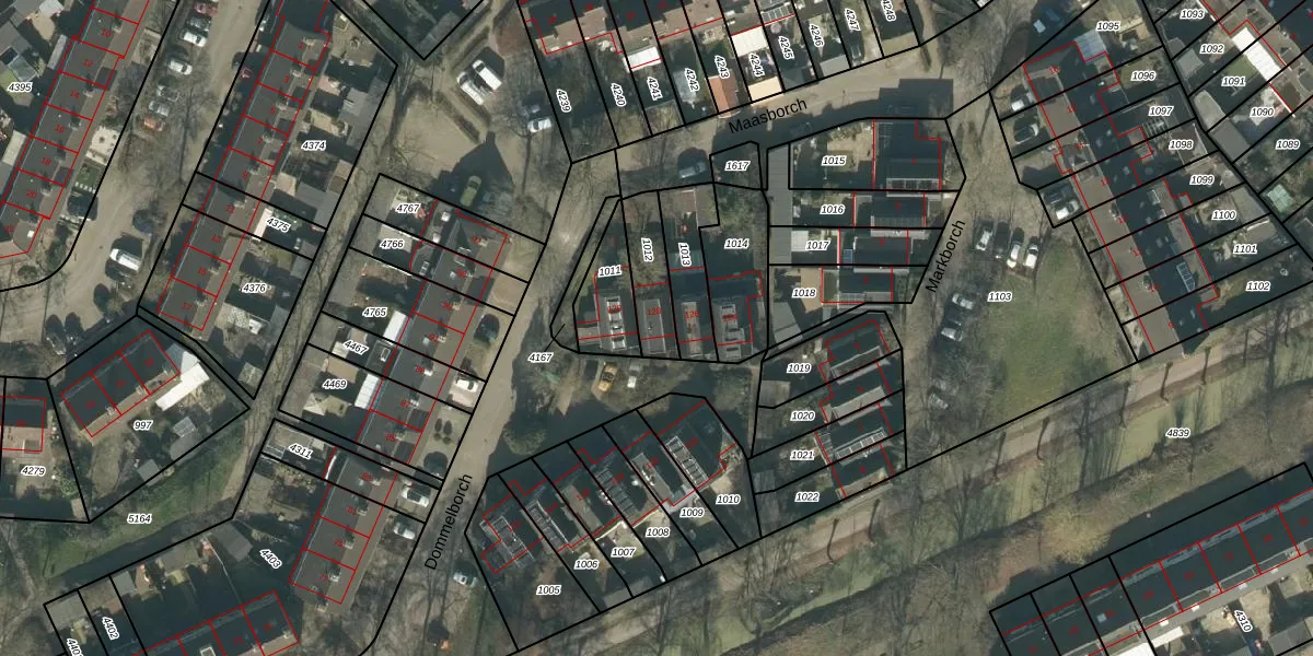 Dommelborch 128 is gelegen op kadastraal perceel RML00I1012. Deze kadastrale aanduiding is uniek en wordt gebruikt door het Kadaster om eigendomsrechten en andere zakelijke rechten vast te leggen. Het perceel maakt onderdeel uit van de kadastrale gemeente Rosmalen.