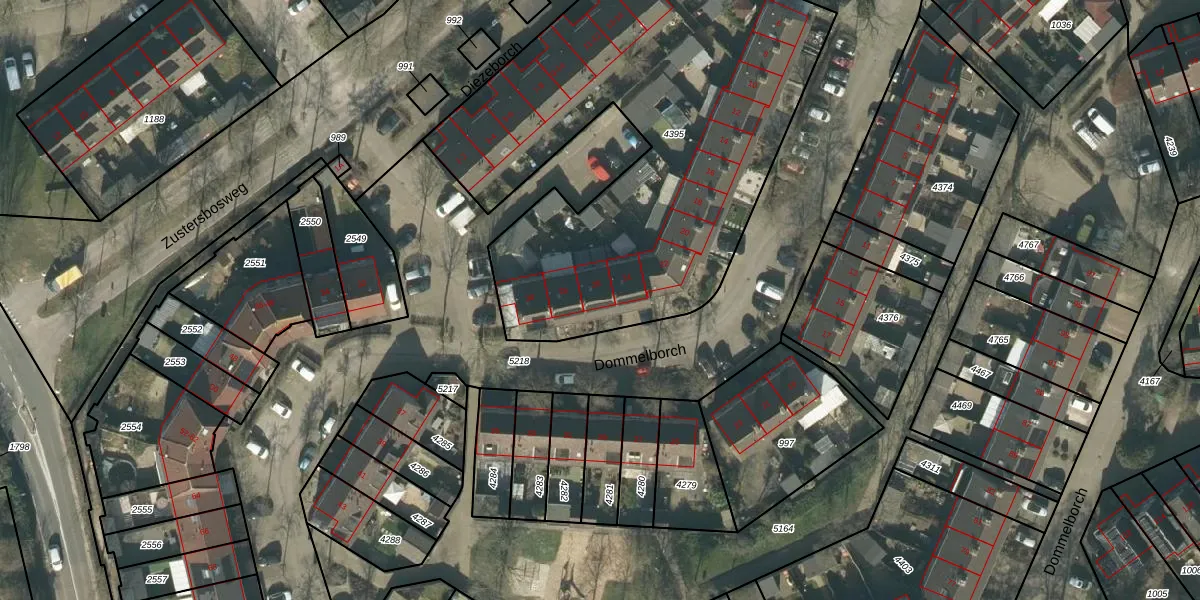 Het perceel waarop Dommelborch 26 staat heeft een oppervlakte van 2628 m². Dit is een zeer groot perceel. De perceeloppervlakte wordt geregistreerd door het Kadaster. Gedetailleerde informatie over de maten van dit perceel kunt u vinden in het rapport Kadastrale kaart met maatvoering van Dommelborch 26.