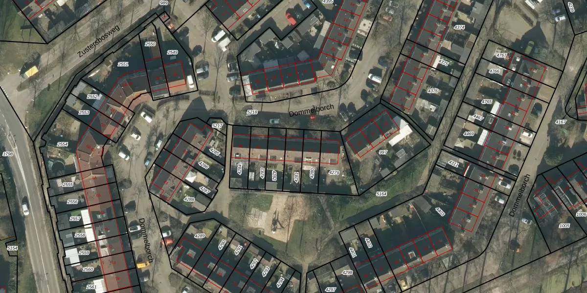 Gebruik de zoekbalk of klik op een perceel voor informatie over de adressen binnen dit perceel.