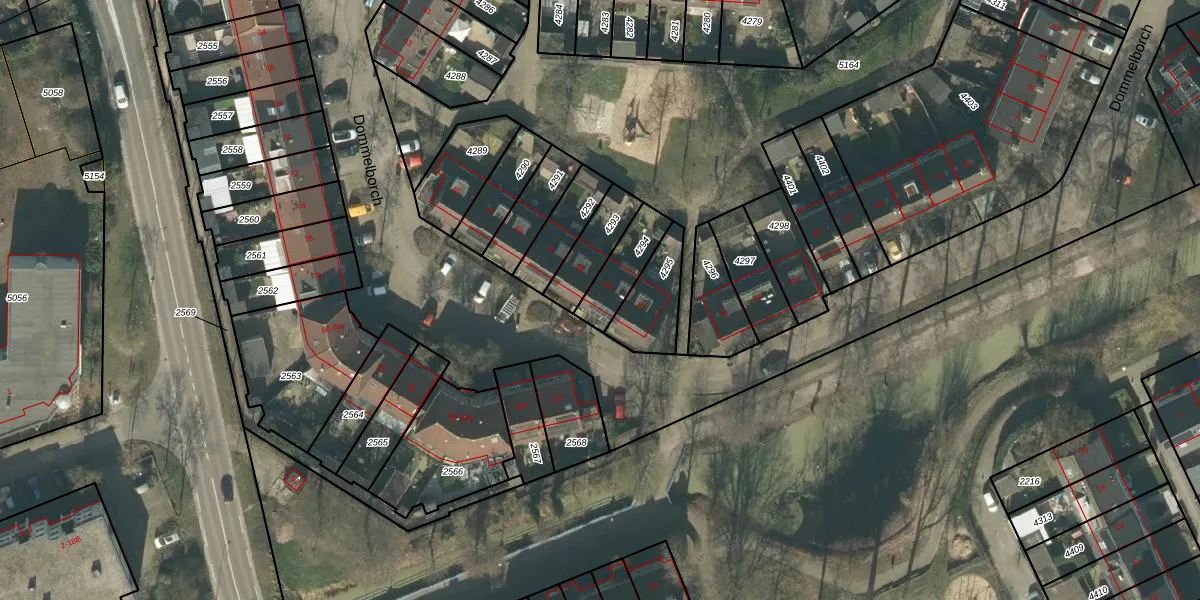 Dommelborch 55 is gelegen op kadastraal perceel RML00I4294. Deze kadastrale aanduiding is uniek en wordt gebruikt door het Kadaster om eigendomsrechten en andere zakelijke rechten vast te leggen. Het perceel maakt onderdeel uit van de kadastrale gemeente Rosmalen.