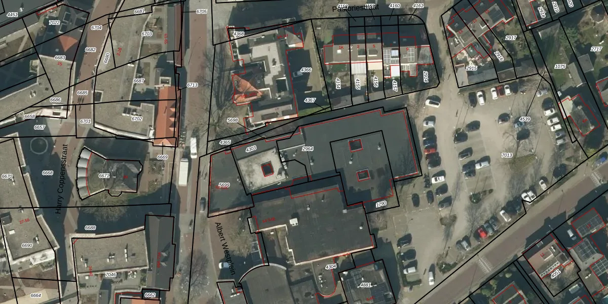 Gebruik de zoekbalk of klik op een perceel voor informatie over de adressen binnen dit perceel.