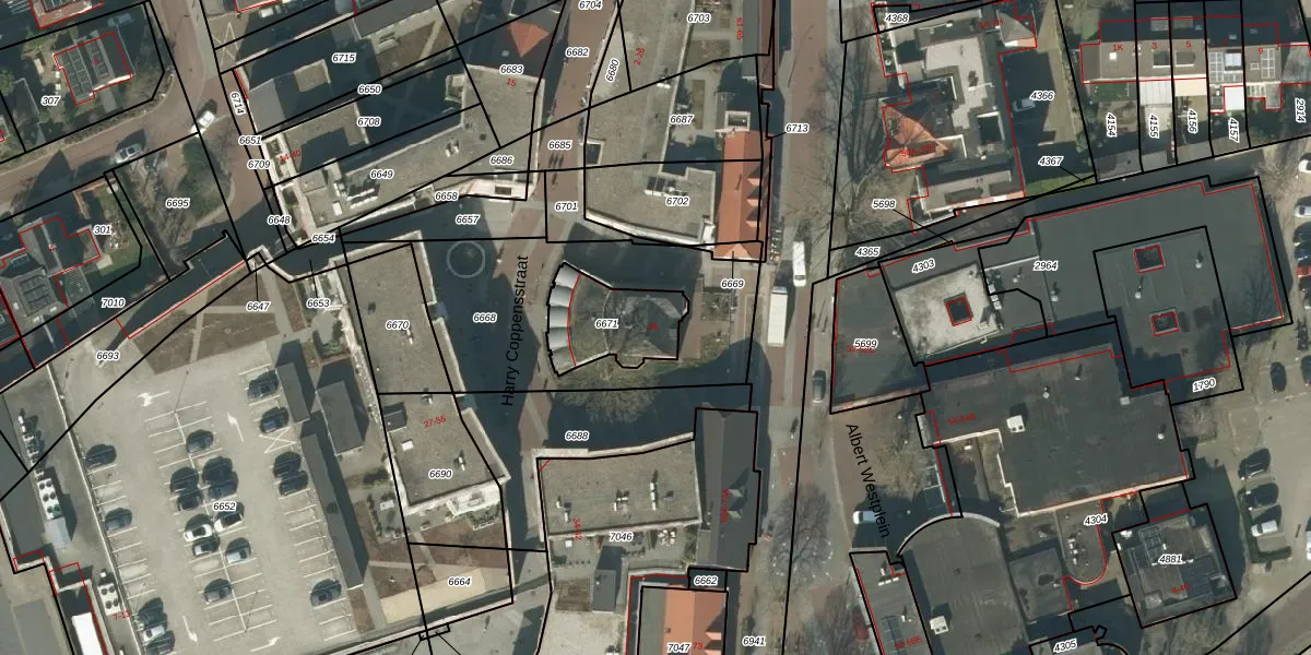 Gebruik de zoekbalk of klik op een perceel voor informatie over de adressen binnen dit perceel.