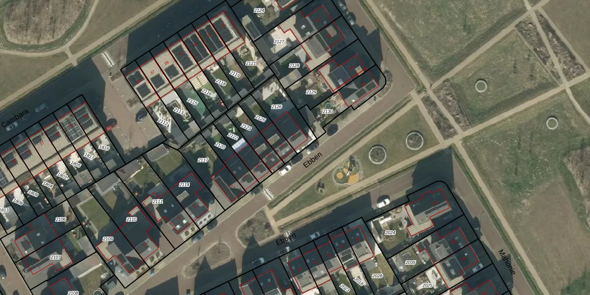 Gebruik de zoekbalk of klik op een perceel voor informatie over de adressen binnen dit perceel.