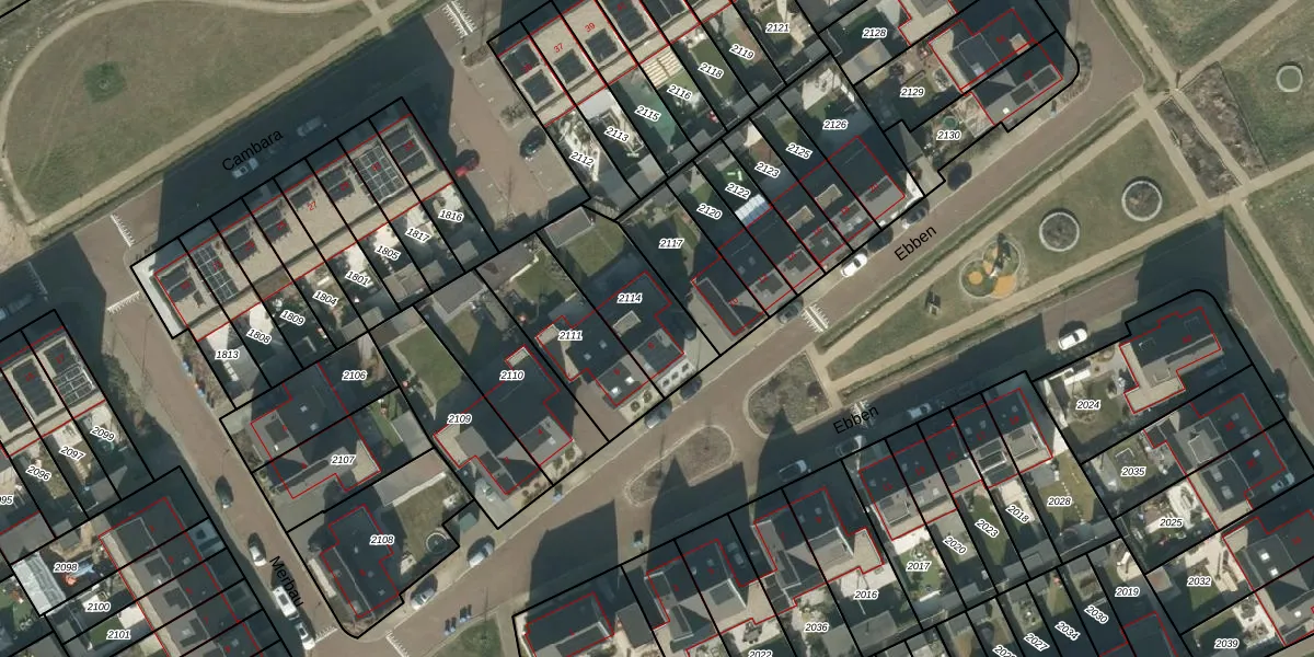 Gebruik de zoekbalk of klik op een perceel voor informatie over de adressen binnen dit perceel.