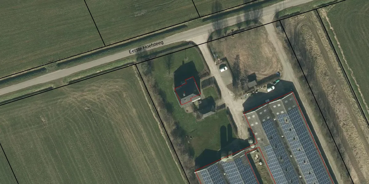 Het perceel waarop Eerste Hoefsteeg 7 staat heeft een oppervlakte van 1,4 ha. Dit is een zeer groot perceel. De perceeloppervlakte wordt geregistreerd door het Kadaster. Gedetailleerde informatie over de maten van dit perceel kunt u vinden in het rapport Kadastrale kaart met maatvoering van Eerste Hoefsteeg 7.