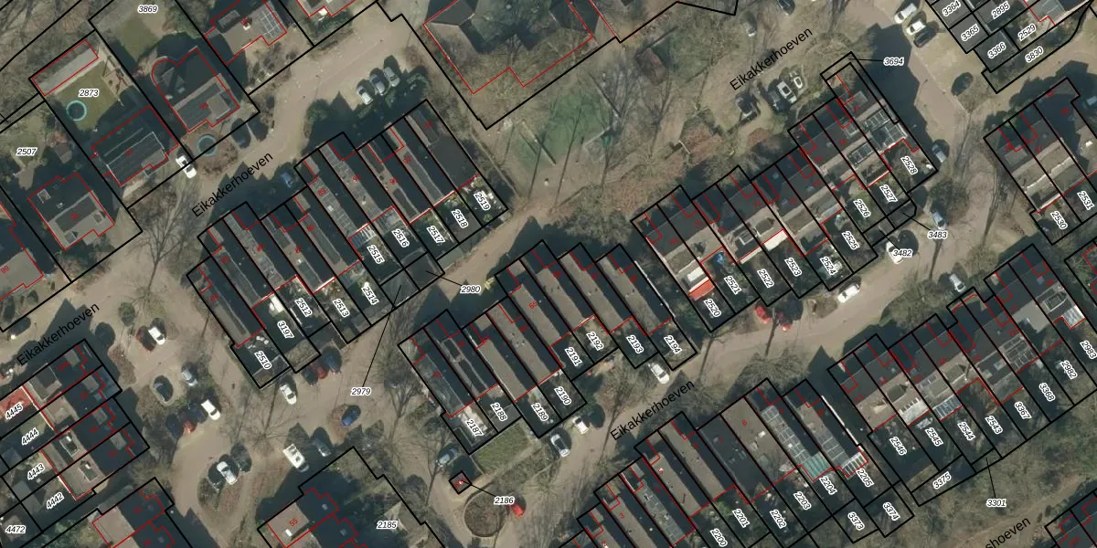 Het perceel waarop Eikakkerhoeven 66 staat heeft een oppervlakte van 128 m². Dit is een middelgroot perceel. De perceeloppervlakte wordt geregistreerd door het Kadaster. Gedetailleerde informatie over de maten van dit perceel kunt u vinden in het rapport Kadastrale kaart met maatvoering van Eikakkerhoeven 66.