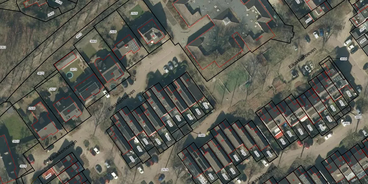 Eikakkerhoeven 92 is gelegen op kadastraal perceel RML00G2518. Deze kadastrale aanduiding is uniek en wordt gebruikt door het Kadaster om eigendomsrechten en andere zakelijke rechten vast te leggen. Het perceel maakt onderdeel uit van de kadastrale gemeente Rosmalen.