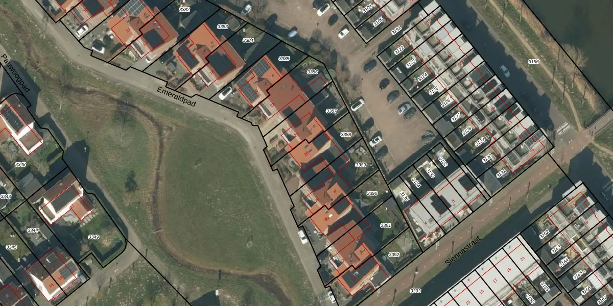 Het perceel waarop Emeraldpad 26 staat heeft een oppervlakte van 313 m². Dit is een groot perceel. De perceeloppervlakte wordt geregistreerd door het Kadaster. Gedetailleerde informatie over de maten van dit perceel kunt u vinden in het rapport Kadastrale kaart met maatvoering van Emeraldpad 26.