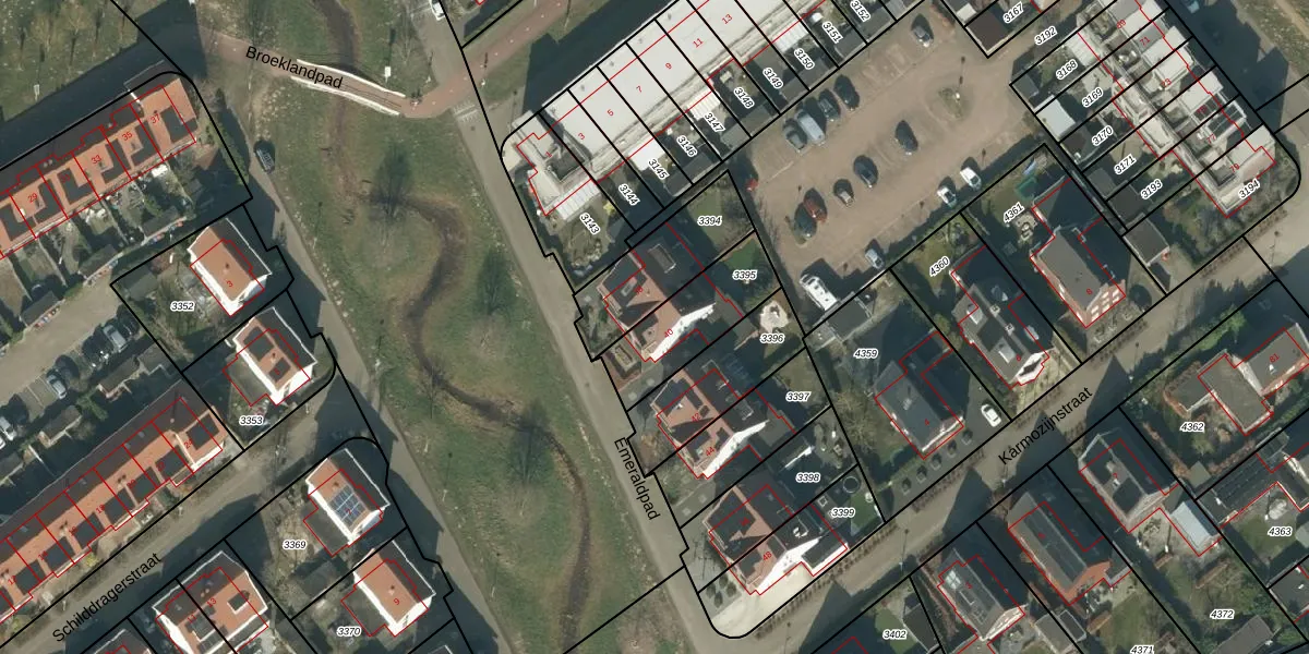 Gebruik de zoekbalk of klik op een perceel voor informatie over de adressen binnen dit perceel.