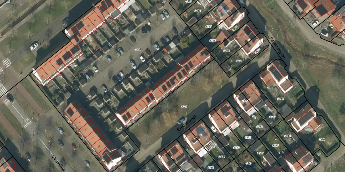 Het perceel waarop Erebiastraat 16 staat heeft een oppervlakte van 7074 m². Dit is een zeer groot perceel. De perceeloppervlakte wordt geregistreerd door het Kadaster. Gedetailleerde informatie over de maten van dit perceel kunt u vinden in het rapport Kadastrale kaart met maatvoering van Erebiastraat 16.