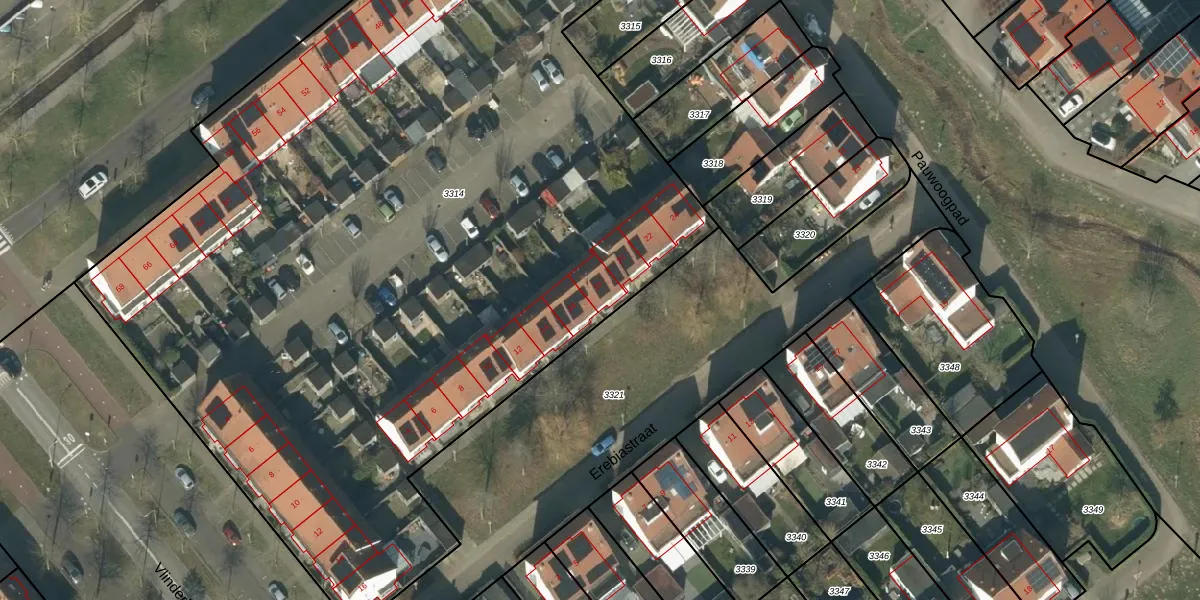 Erebiastraat 18 is gelegen op kadastraal perceel RML00I3314. Deze kadastrale aanduiding is uniek en wordt gebruikt door het Kadaster om eigendomsrechten en andere zakelijke rechten vast te leggen. Het perceel maakt onderdeel uit van de kadastrale gemeente Rosmalen.