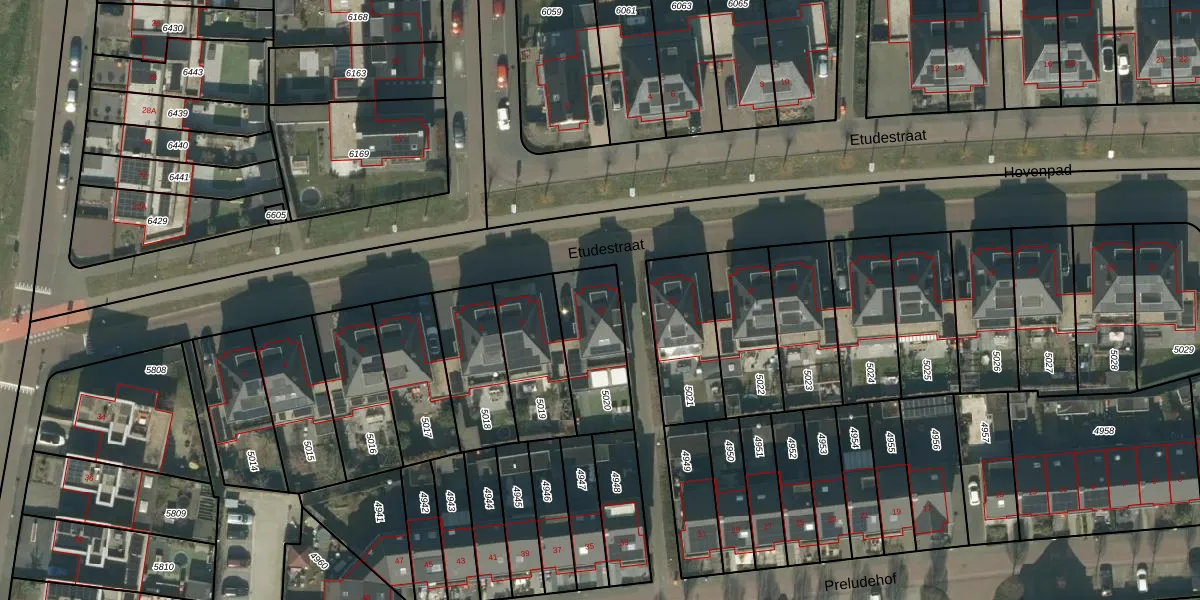 Het perceel waarop Etudestraat 13 staat heeft een oppervlakte van 278 m². Dit is een middelgroot perceel. De perceeloppervlakte wordt geregistreerd door het Kadaster. Gedetailleerde informatie over de maten van dit perceel kunt u vinden in het rapport Kadastrale kaart met maatvoering van Etudestraat 13.