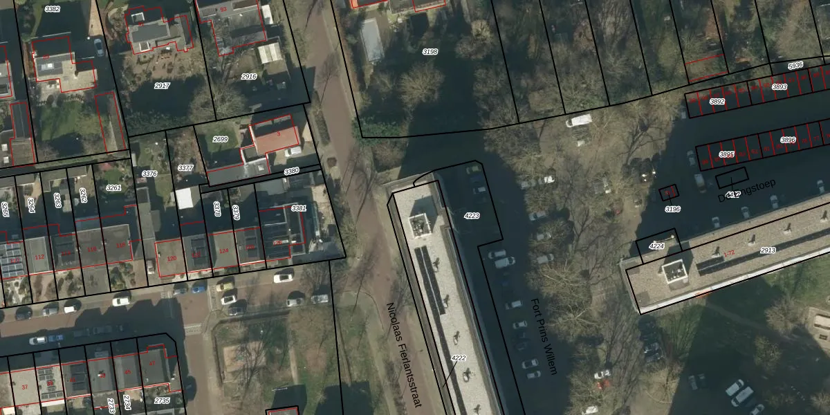 Het perceel waarop Fort Prins Willem 44 staat heeft een oppervlakte van 1027 m². Dit is een zeer groot perceel. De perceeloppervlakte wordt geregistreerd door het Kadaster. Gedetailleerde informatie over de maten van dit perceel kunt u vinden in het rapport Kadastrale kaart met maatvoering van Fort Prins Willem 44.