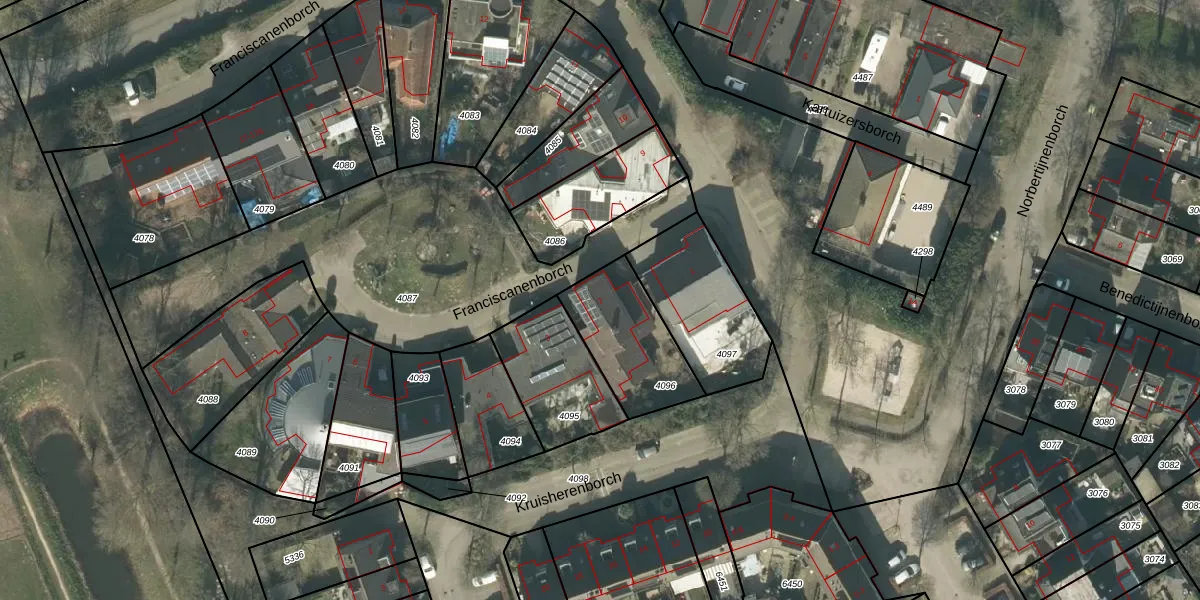 Gebruik de zoekbalk of klik op een perceel voor informatie over de adressen binnen dit perceel.