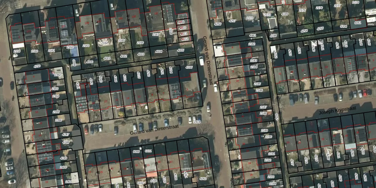 Gebruik de zoekbalk of klik op een perceel voor informatie over de adressen binnen dit perceel.