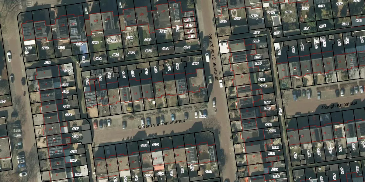 Het perceel waarop Gerard van Dinterstraat 5 staat heeft een oppervlakte van 164 m². Dit is een middelgroot perceel. De perceeloppervlakte wordt geregistreerd door het Kadaster. Gedetailleerde informatie over de maten van dit perceel kunt u vinden in het rapport Kadastrale kaart met maatvoering van Gerard van Dinterstraat 5.