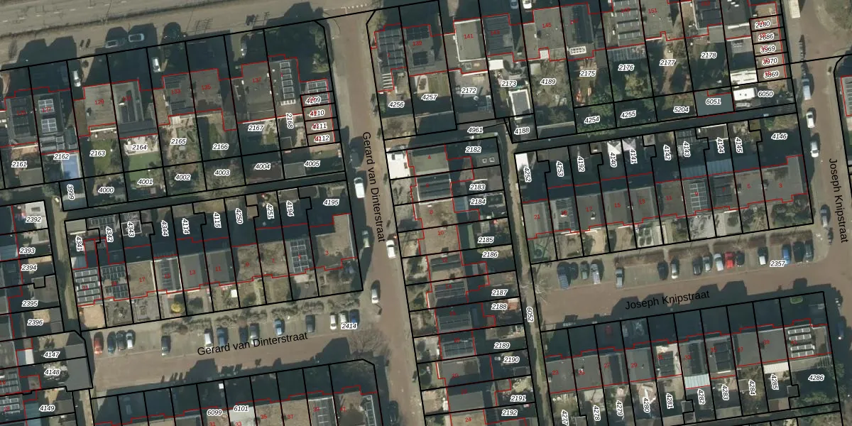 Het perceel waarop Gerard van Dinterstraat 8 staat heeft een oppervlakte van 164 m². Dit is een middelgroot perceel. De perceeloppervlakte wordt geregistreerd door het Kadaster. Gedetailleerde informatie over de maten van dit perceel kunt u vinden in het rapport Kadastrale kaart met maatvoering van Gerard van Dinterstraat 8.