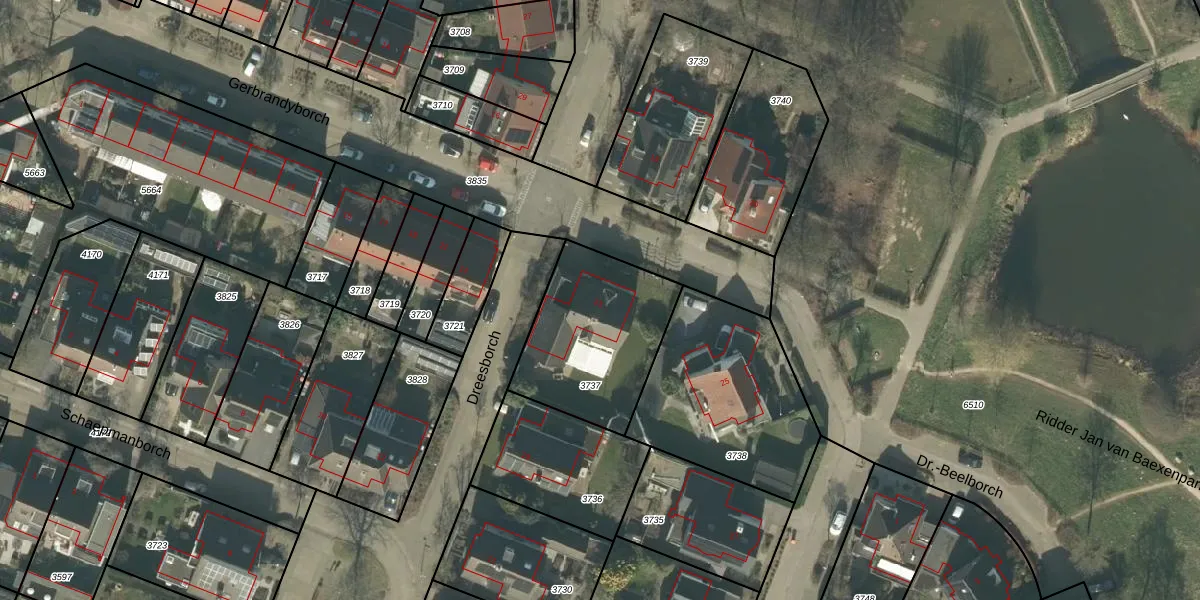 Gebruik de zoekbalk of klik op een perceel voor informatie over de adressen binnen dit perceel.